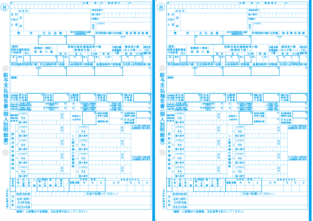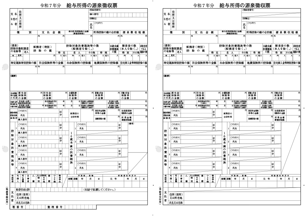 令和7年度(令和8年提出)の源泉徴収票は、レイアウト変更があるため、前年度様式の源泉徴収票は流用不可となります。